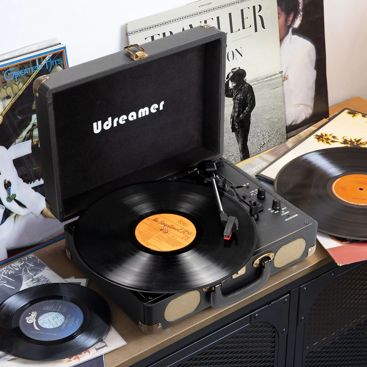- 【VINYL PLAYER】 Three-speed Turntable (33, 45, 78 RPM) plays all of your 7" 10" 12" vinyl records.