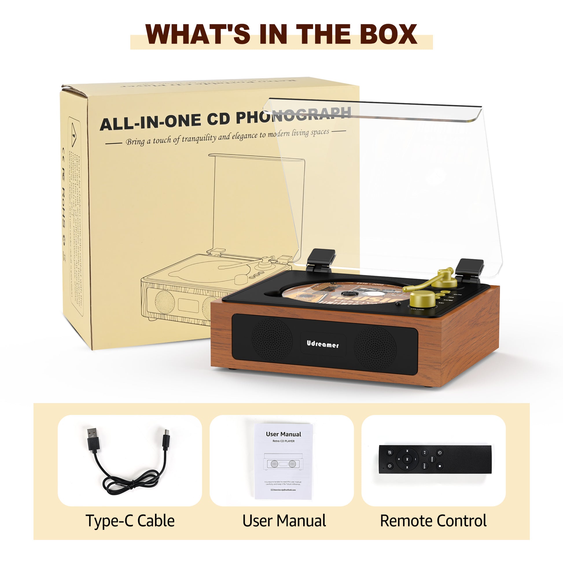 Udreamer CD Players for Home,Portable CD Boombox, Digital Portable CD Player with Bluetooth Hi-Fi Stereo Sound,Remote Control, Support AUX/USB, Headphone Jack, Black